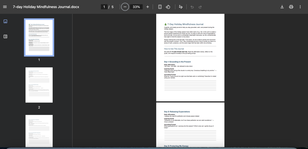 The holiday season can be beautiful—and overwhelming. This 7-Day Holiday Mindfulness Journal is a gentle, printable guide designed to help you slow down, reconnect with the present moment, and find calm amid the holiday chaos.